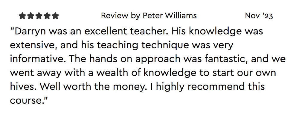Courses run from mid September each year and are a one day intensive course designed for beginners to get all the skills and knowledge to start keeping their own hive.